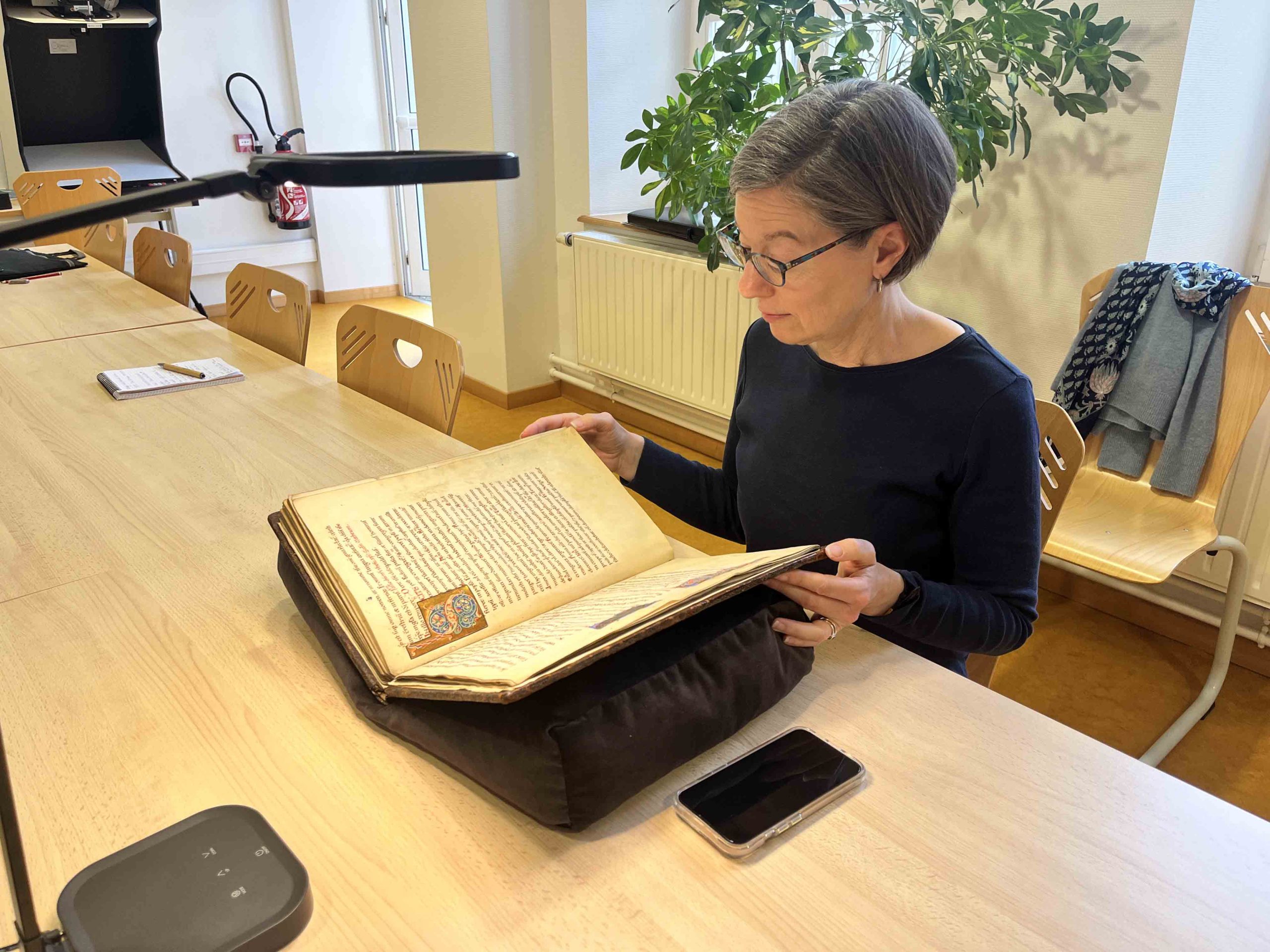 Les archives municipales de Remiremont accueillent actuellement Diane Reilly, professeure à l’université d’Indiana (États-Unis), venue étudier de près un manuscrit enluminé datant du Moyen Âge. Historienne de l’art, elle revient à Remiremont après un premier passage en janvier pour approfondir ses recherches.