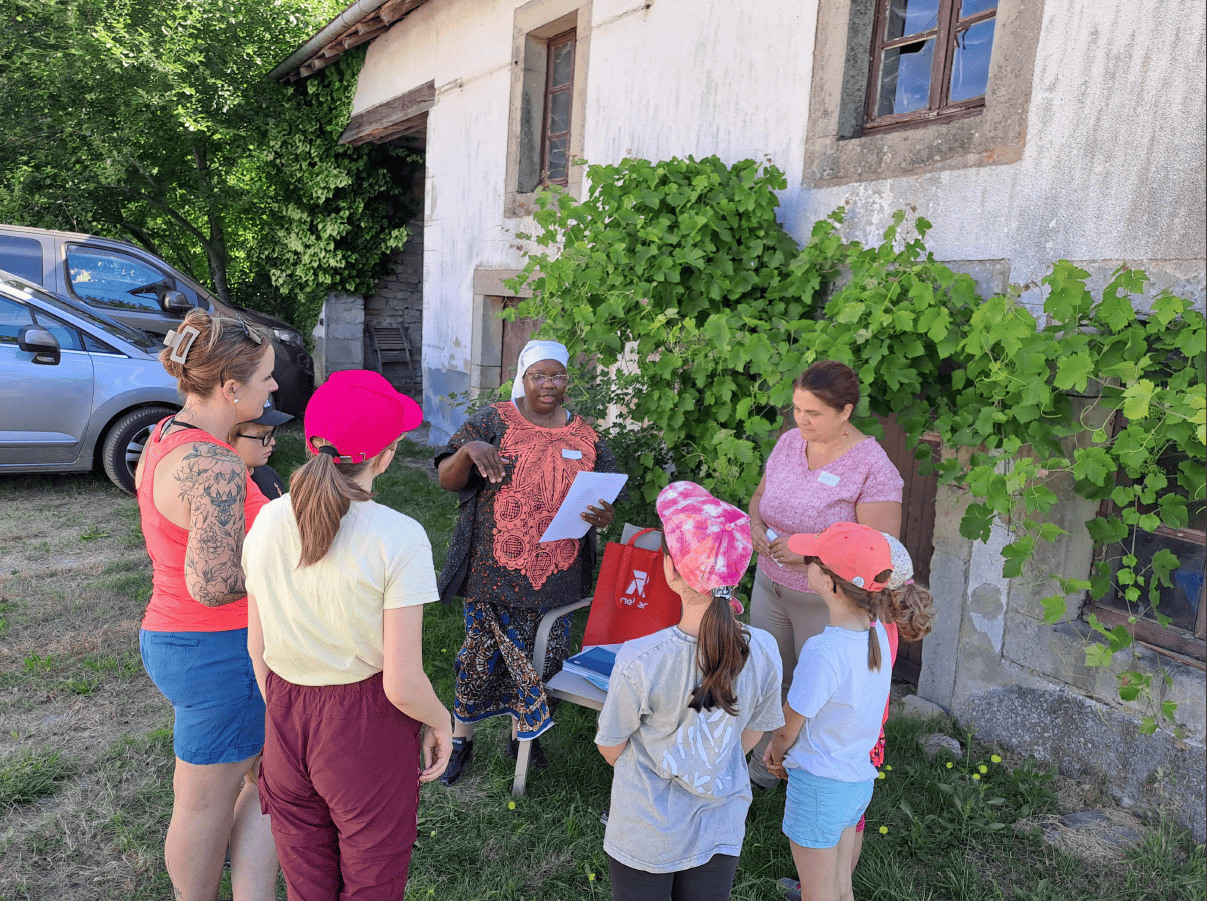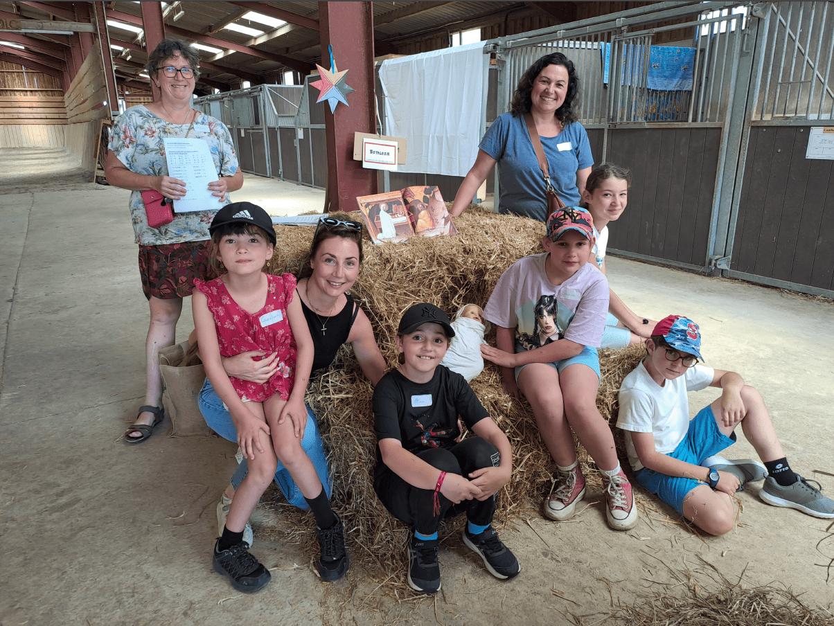 25 enfants, encadrés par plusieurs mamans et un papa, les catéchistes, le Père Joseph, ont passé la journée dans un endroit charmant, en pleine campagne au domaine de la « Ferme Cosmic » à Bellefontaine, où la propriétaire des lieux Carole, et sa famille les accueillaient. Journée de détente, de prière, de jeux, de créativité, de découverte.