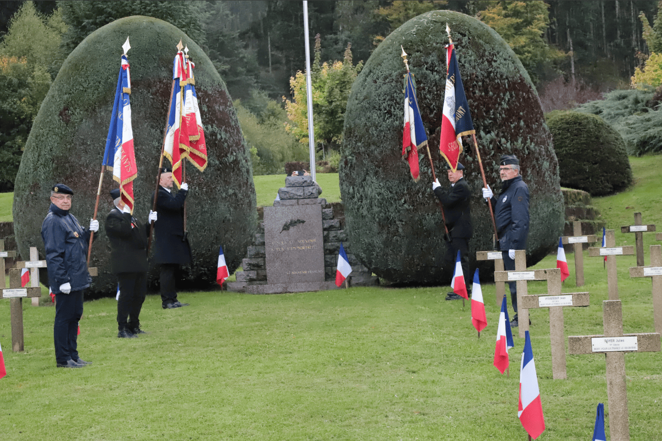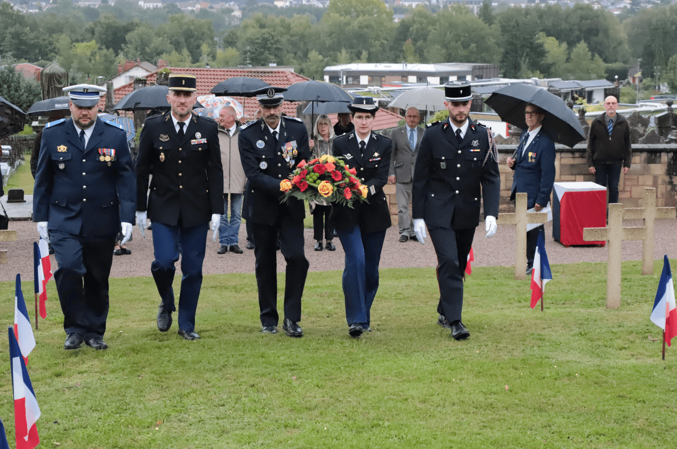 Une gerbe a été déposée au pied du monument aux morts avec levée des couleurs et minute de recueillement ainsi qu’une autre au cimetière militaire.