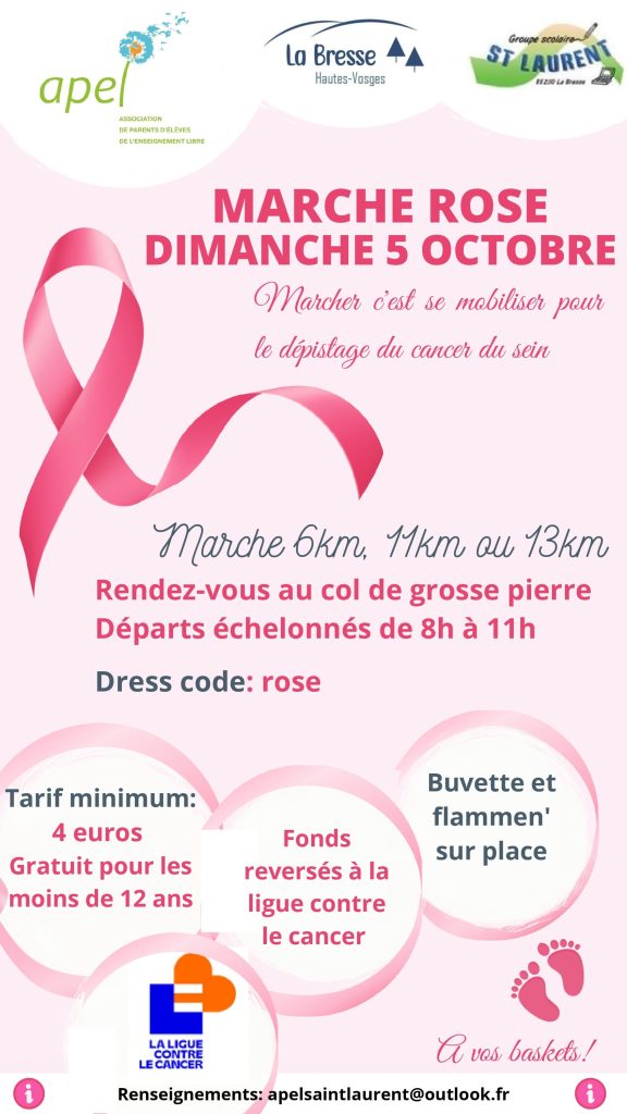 Une marche rose est prévue le dimanche 5 octobre sur le site du col de Grosse Pierre à La Bresse, organisée par l’association de parents d’élèves du groupe scolaire Saint-Laurent.