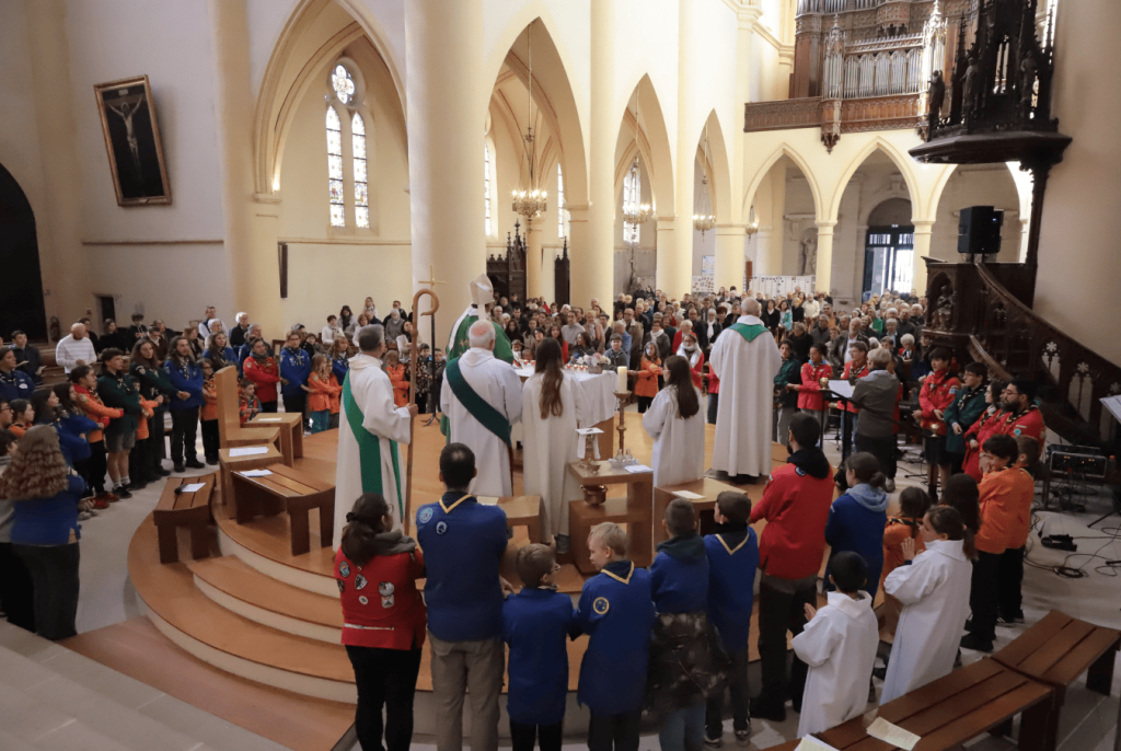 Plusieurs temps ont marqué la cérémonie. Notamment, la procession portant devant l’ancre de l’espérance matérialisée pour l’occasion, les 5 orientations retenues dans le cadre de l’année jubilaire que sont : La paix, la joie de vivre, les malades et personnes âgées, nos prisons, les jeunes. Mais aussi, le rassemblement autour de l’évêque des scouts et le rappel de leur « promesse ». Et enfin, l’envoi en mission des quelques trente services et mouvements de l’église, tous représentés par une personne devant l’évêque.