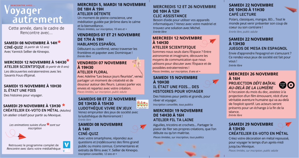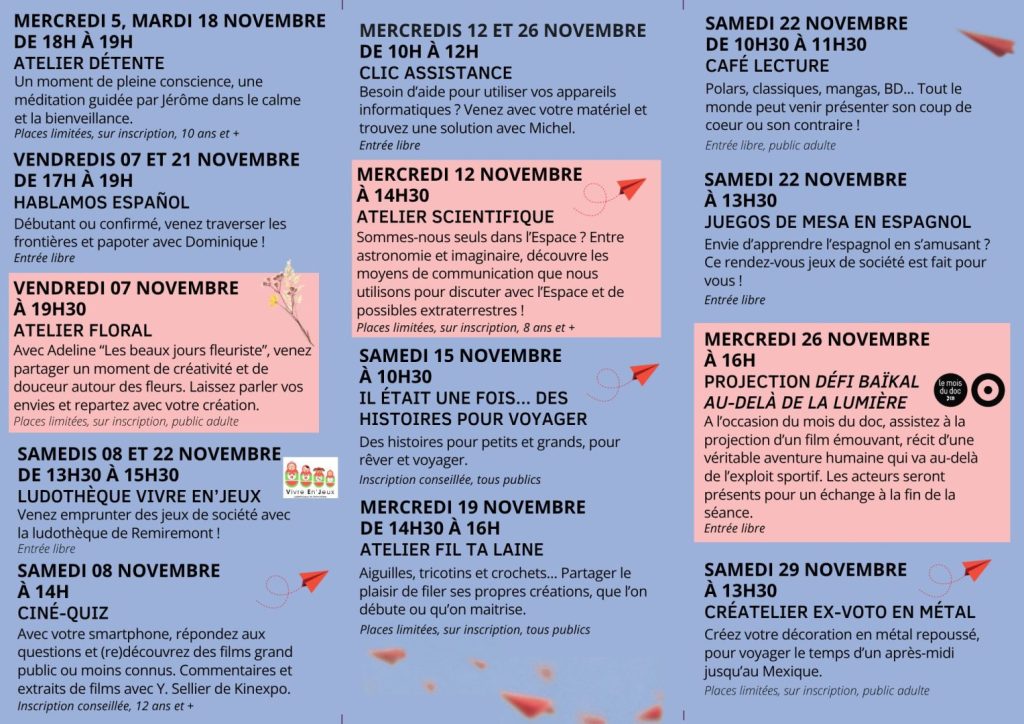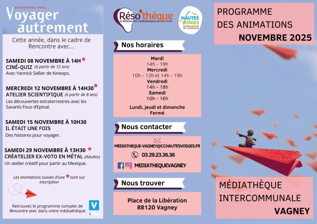 La médiathèque de Vagney a sorti dernièrement son programme des animations du mois de novembre.