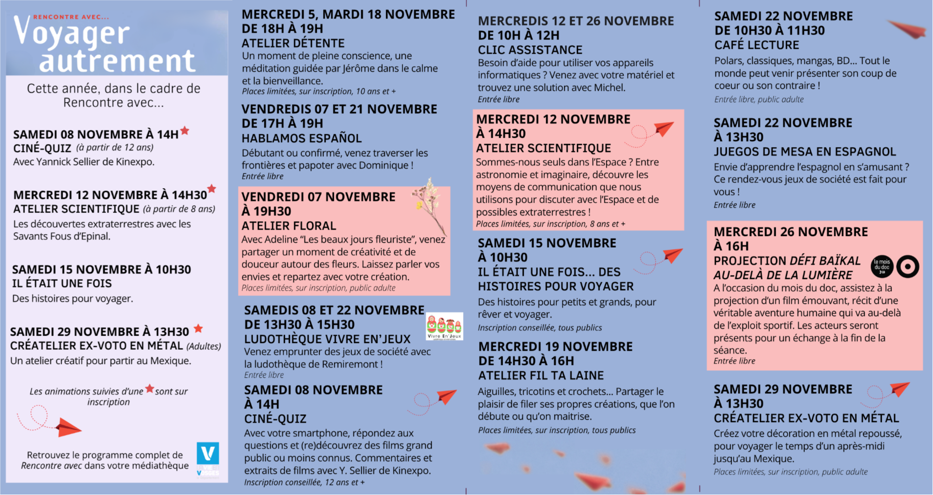 La médiathèque de Vagney a sorti dernièrement son programme des animations du mois de novembre.