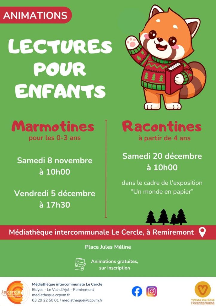 Programme des lectures enfants de la médiathèque intercommunale Le Cercle pour novembre-décembre :