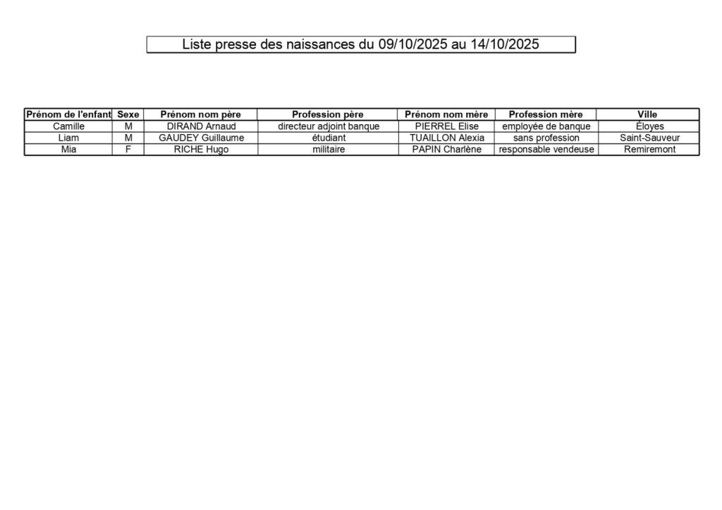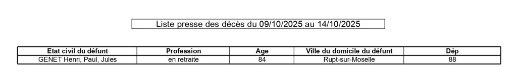 Remiremont : naissances & décès – semaine du 9 au 14 octobre 2025 |