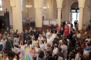 Après s’être longuement préparés durant plusieurs mois et avoir chacun envoyé une lettre de demande à l’évêque, les confirmands sont rentrés dans l’abbatiale en procession pour prendre place autour de l’autel.