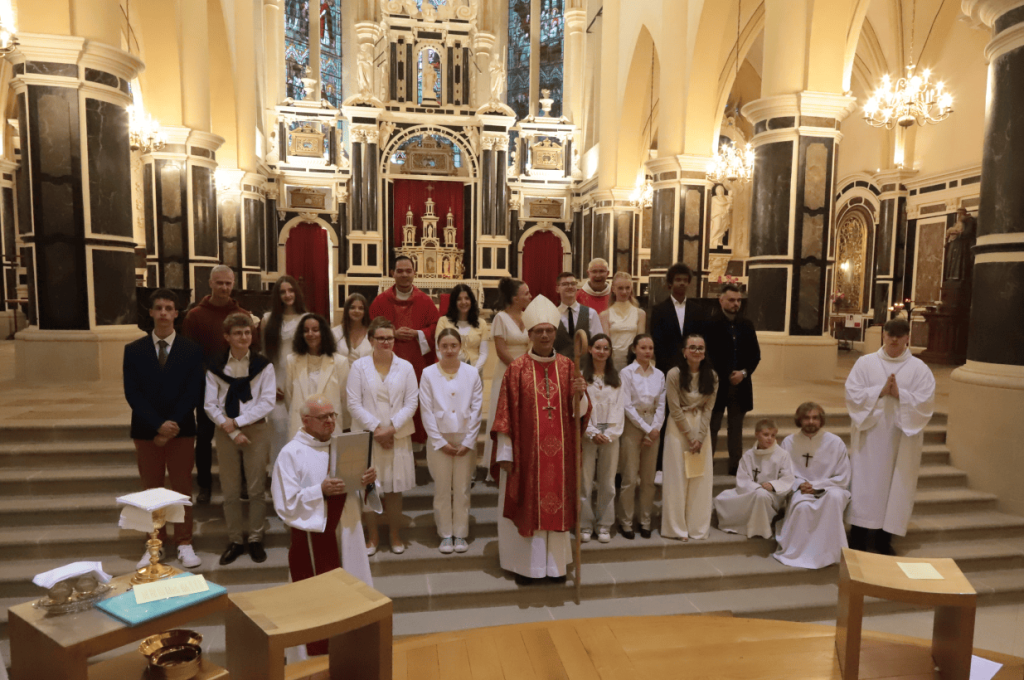 Ce samedi en fin de journée, quinze jeunes et un adulte se présentaient devant l’évêque du diocèse de Saint-Dié, Monseigneur Gourdon, pour recevoir le sacrement de la confirmation en l’abbatiale de Remiremont.
