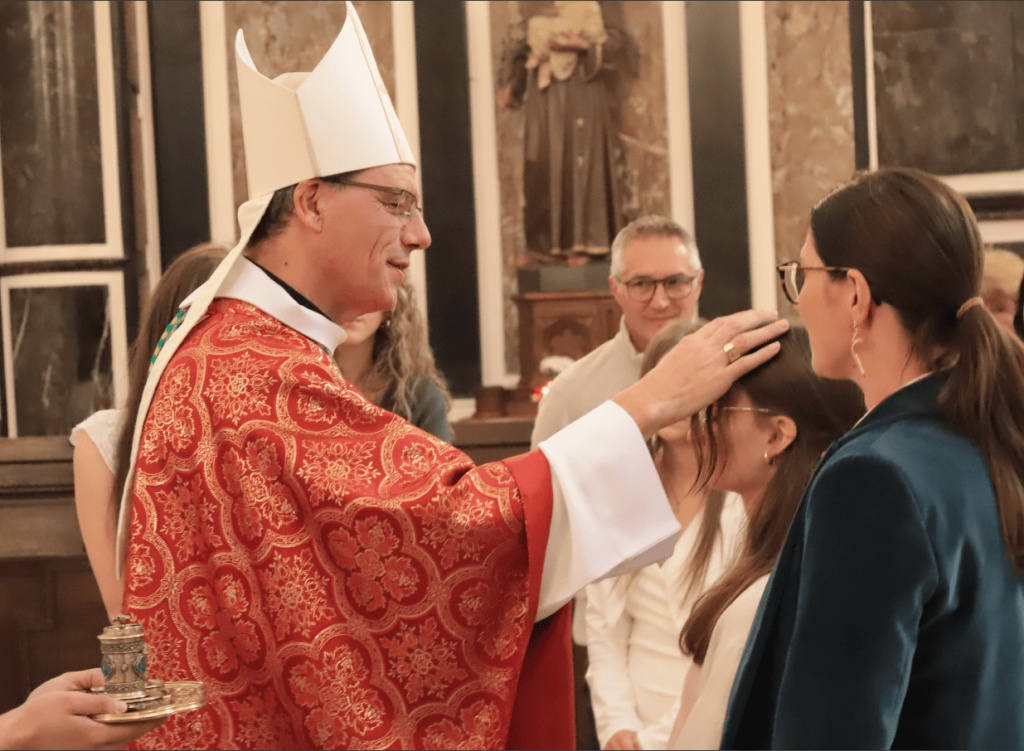 Monseigneur était entouré par le Père Claude Durupt, curé de la paroisse, le Père Joseph et le diacre Francis Millot. Les confirmands étaient accompagnés par leurs parrains ou marraines et par les responsables et accompagnateurs d’aumônerie. Par ce sacrement, les confirmands ont reçu le don de l’Esprit Saint pour les fortifier dans leur foi. Une grande joie et une profonde émotion se lisaient sur le visage des confirmands, tout comme dans l’assemblée.