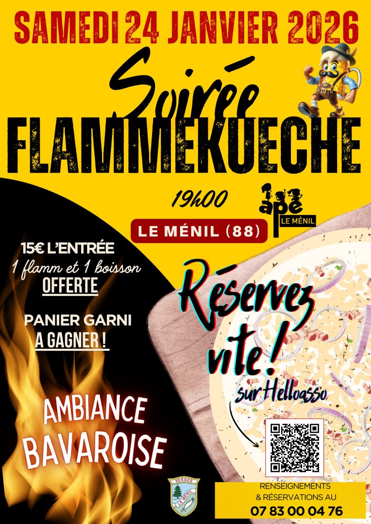 L’APE du Ménil vous propose LA SOIRÉE du début d’année : 𝗙𝗹𝗮𝗺𝗺𝗲𝗸𝘂𝗲𝗰𝗵𝗲 !