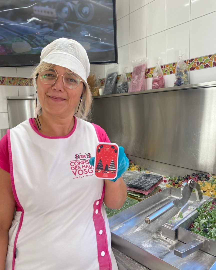 Pour cette édition spéciale, trois créations ont été imaginées. La pièce maîtresse de la collection est une grande boîte de bonbons de Noël de 150 grammes. Présentés individuellement sous papillote et garantis sans colorant, ces bonbons déclinent six saveurs emblématiques de la région : bergamote, sapin des Vosges, miel de sapin, mûre, framboise et myrtille.