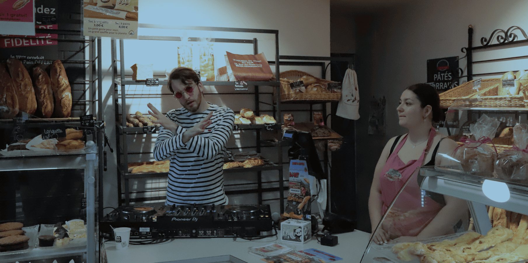DJ Baguette pose ses platines à la boulangerie du Point du Jour à Remiremont.