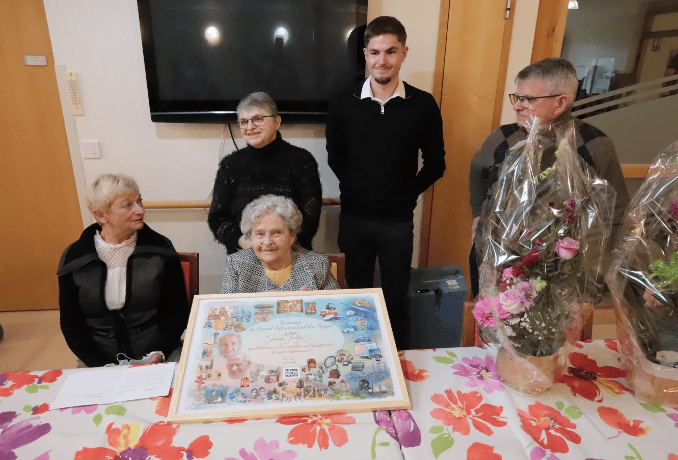 Ce mercredi après-midi était jour de fête à l’EHPAD du Home Fleuri de Saint-Étienne-les-Remiremont, Jeanne Saulcy fêtait ses 100 ans.
