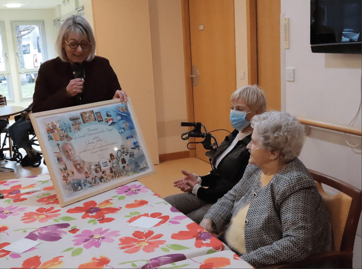 Tout l’établissement était rassemblé pour l’occasion, les résidents, le personnel, Emmanuel Marin le directeur, et Sylvie Mathieu la présidente d’Adavie. Pour cette belle fête, Jeanne était aussi entourée de ses trois enfants, Francine, Christian et Colette, accompagnés de leurs conjoints respectifs.