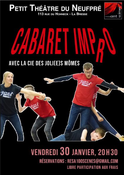 Premier rendez-vous de l’année 2026 pour la Compagnie Cent Scènes : après plusieurs rencontres musicales ou littéraires en fin d’année 2025, le théâtre est à nouveau à l’honneur en ce début d’année, sous une forme encore jamais explorée au Petit Théâtre du Neufpré. En effet, la compagnie invite la BIM (Bruyères Improvisation, une section de la Compagnie des Joli(e)s Mômes) pour un Cabaret Impro vendredi 30 janvier, 20 h 30.