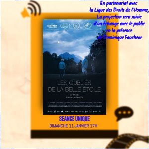 En partenariat avec La Ligue des Droits de l’Homme, projection du film de Clémence Davigo  « LES OUBLIES DE LA BELLE ETOILE » ce dimanche 11 janvier à 17h au Cinéma Grand Ecran de La Bresse .