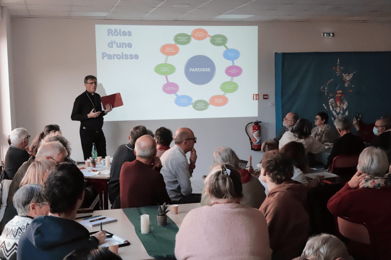 Après avoir entendu la synthèse des quelque 56 contributions, portées par près d’un millier de participants lors de la première étape, la centaine de fidèles venus de toutes les paroisses de la zone montagnes s’est mise au travail. Durant plus de deux heures, tous ont réfléchi, par petits groupes, et apporté leur pierre à l’édifice de cette deuxième étape en s’interrogeant sur le rôle d’une paroisse ou encore sur les besoins auxquels ces nouveaux lieux pourraient aider les paroisses et chacun à répondre.