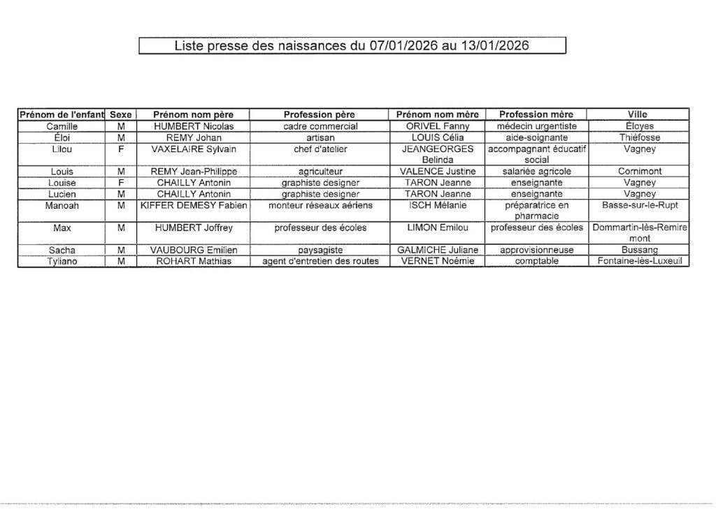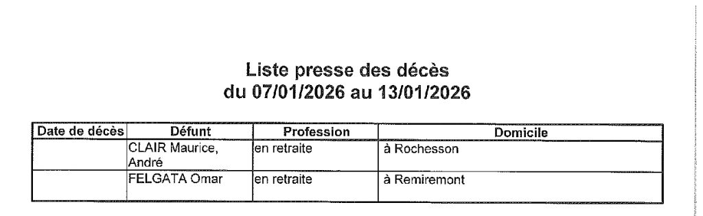15 janvier 2026 | A la Une | Etat civil | Remiremont La redaction