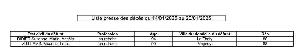 21 janvier 2026 | A la Une | Etat civil | Remiremont La redaction