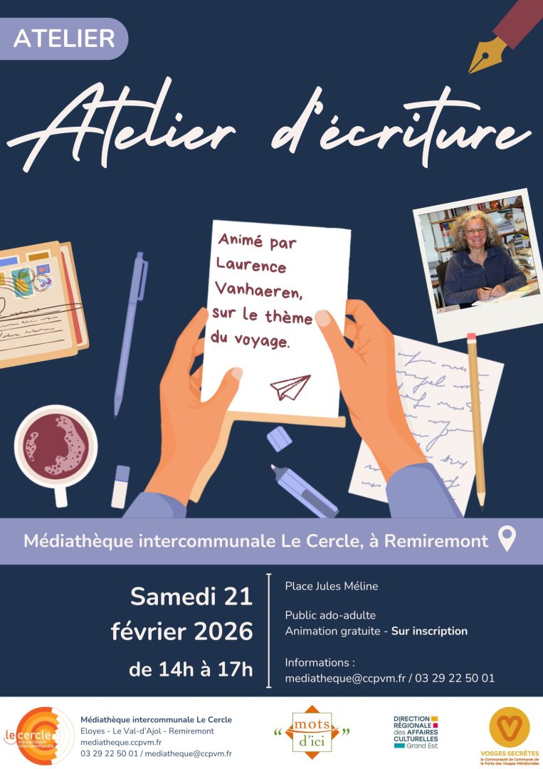 A partir du mois de janvier, Laurence Vanhaeren, auteure et animatrice professionnelle, vous propose un cycle d’ateliers d’écriture. Une fois par mois jusqu’au mois de juin vous pourrez vous essayer au plaisir de mots dans un cadre bienveillant et guidé.