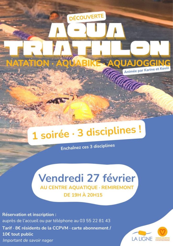 La Ligne organise aussi un événement exceptionnel, la découverte d’un « aquatriathlon » permettant la pratique de 3 disciplines en une soirée : natation, aquabike et aquajogging. Cette animation s’adresse à un public nageur et sportif afin d’enchainer ces 3 disciplines de chacune 25 minutes.