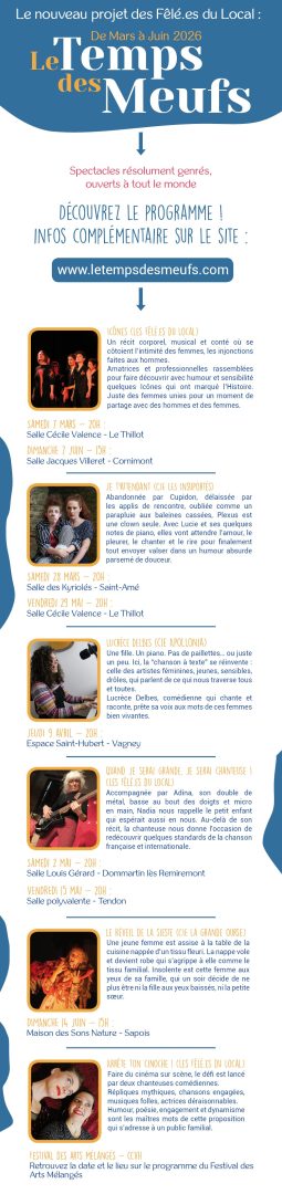 Découvrez le programme du festival ci dessous et sur le site de l’avénement : https://letempsdesmeufs.com/programme