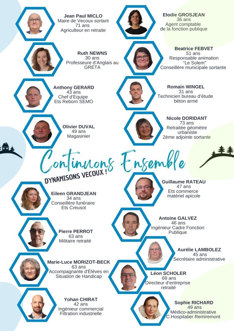 Notre liste rassemble des femmes et des hommes d’horizons divers, partageant une passion commune : Vecoux.