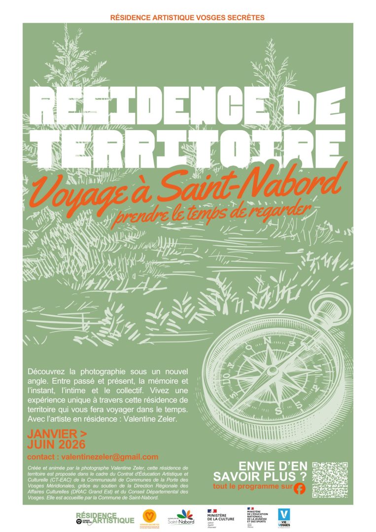 Créée et animée par la photographe Valentine Zeler, cette résidence de territoire est proposée dans le cadre du Contrat d’Éducation Artistique et Culturelle (CT-EAC) de la Communauté de Communes de la Porte des Vosges Méridionales, grâce au soutien de la Direction Régionale des Affaires Culturelles (DRAC Grand Est) et du Conseil Départemental des Vosges. Elle est accueillie par la Commune de Saint-Nabord.