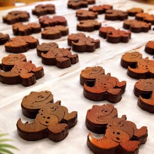 Difficile d’imaginer Pâques sans chocolat. A découvrir la gamme d’adorables et délicieux Chocorex, parmi lesquels le dinosaure, tout naturellement le plus gourmand de la préhistoire… Du 100 % plaisir à se partager entre petits et grands. Préparé par la chocolatière maison avec feuilletine praline et amande, beurre de cacao, couverture de lait et brisure de crêpes.