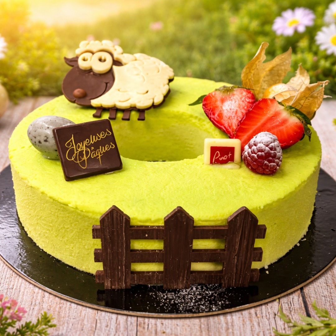 Pâques est synonyme du renouveau, chacun s’accordera à le dire. Une invitation à découvrir une création tout en fraîcheur : la prairie. Il s’agit d’un biscuit pistache et sa compotée de framboise, mousse vanille onctueuse. Réservations recommandées.