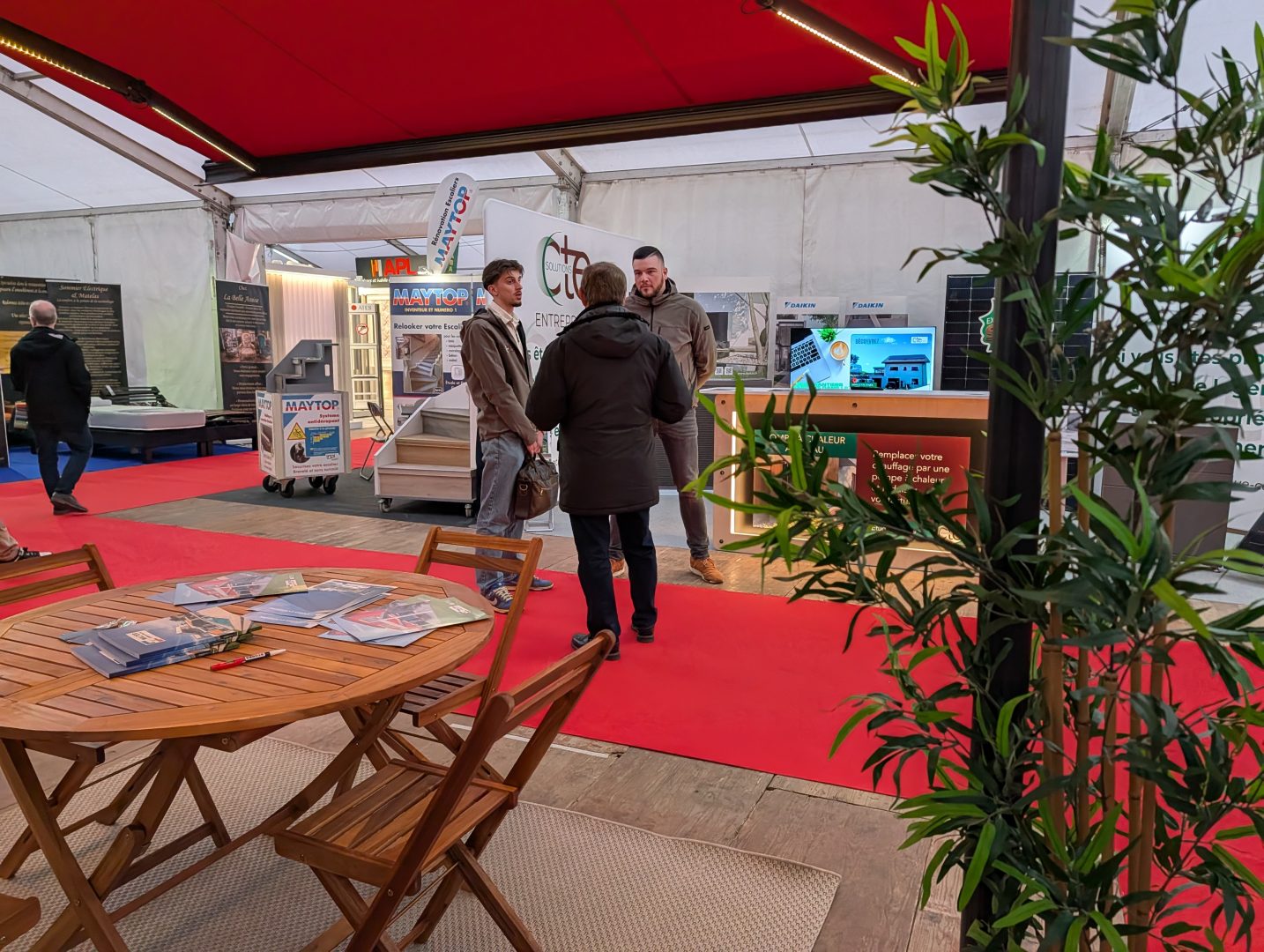 Installé dans un chapiteau chauffé et parqueté de 1 400 mètres carrés, le salon rassemble 48 exposants. La plupart sont des artisans, PME et TPE de la Déodatie, avec aussi quelques professionnels venus d’Alsace. Construction, rénovation, décoration, cuisines, salles de bain, aménagement extérieur ou chauffage : tout l’univers de la maison est représenté sur place.