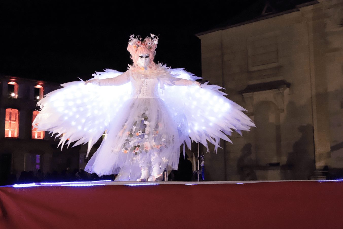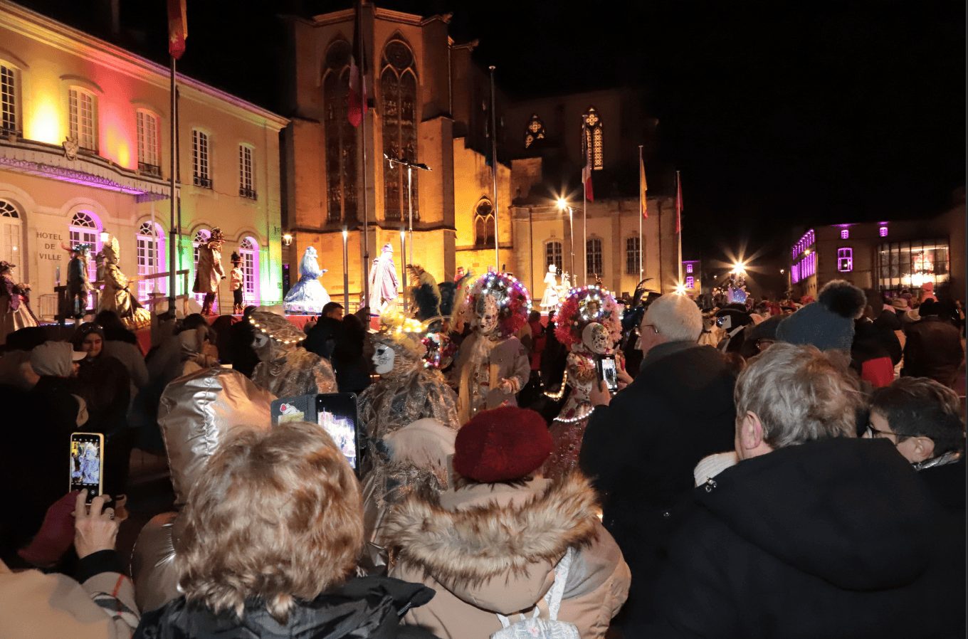 Si toute la journée de ce vendredi, les costumés ont déambulé sous les arcades, le moment fort a été la parade sur les estrades. Une explosion de couleur dans le cadre du palais abbatial pour le régal des yeux des spectateurs, chaudement vêtus pour supporter la température hivernale.