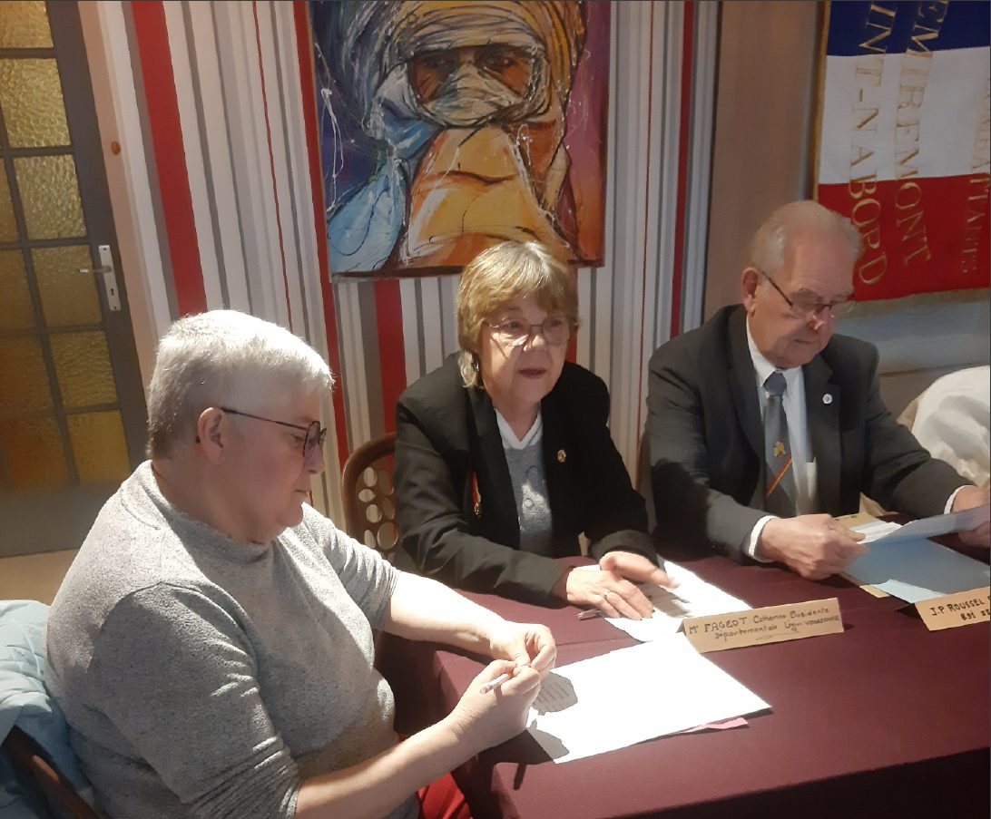 Catherine Fageot, présidente fédérale, a, pour sa part, présenté avec beaucoup de motivation son projet des 100 ans de la Légion Vosgienne en 2028. Elle a ensuite remis la médaille d’argent de la Légion Vosgienne à Camille Valentin et Gilbert Gallauziaux. Puis remis à Michel Couval un dossier concernant le capitaine Poirot, son grand-père, « l’as de l’infanterie de la guerre 1914-1918 » retrouvé dans les archives du bureau fédéral.