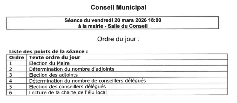 Pouxeux – ordre du jour du conseil municipal du 20 mars