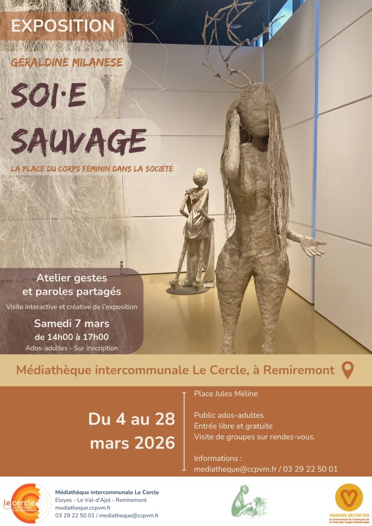Soi·e sauvage est une invitation à vivre une expérience sensible, à la fois artistique et humaine, autour du corps, du regard et de la liberté de se définir.Médiathèque intercommunale Le Cercle à Remiremont, du 4 au 28 mars 2026