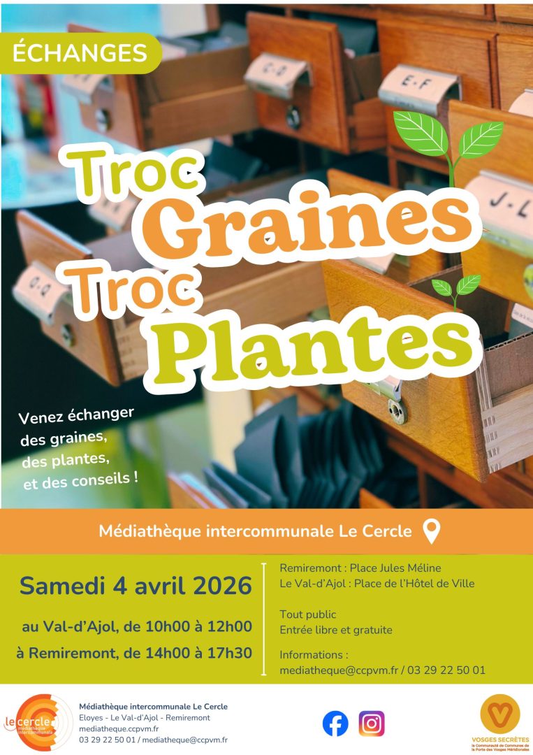 Troc graines et plantes le samedi 4 avril à la médiathèque du Val-d’Ajol et de Remiremont