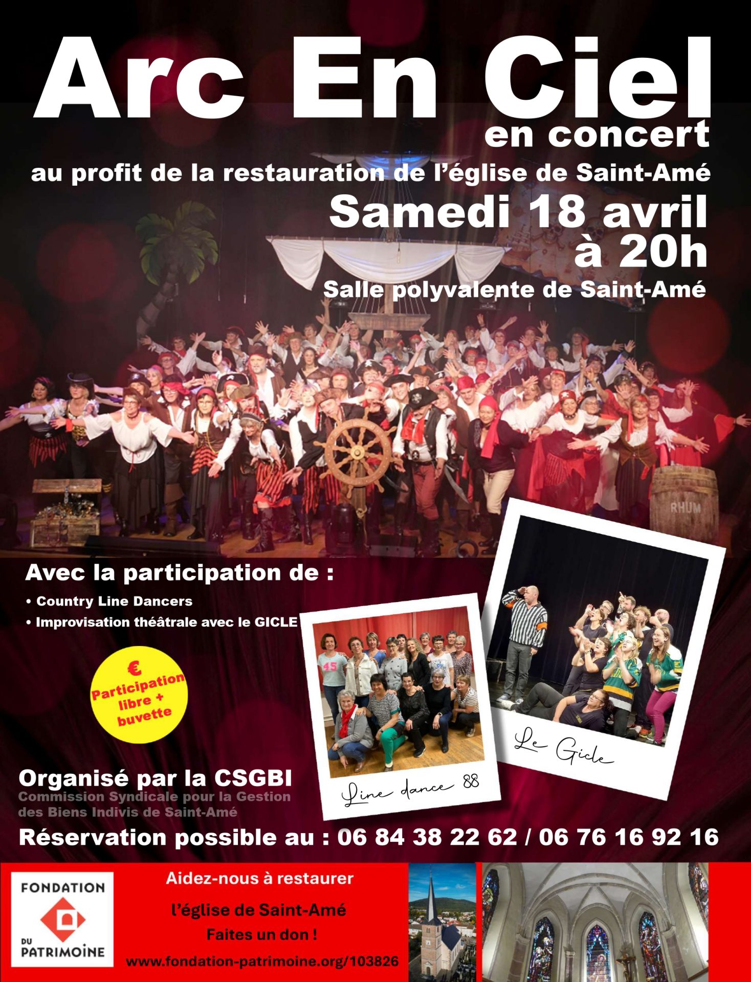 Un concert sera donné par la chorale Arc en ciel le samedi 18 avril à 20h00 à la salle polyvalente de Saint-Amé.