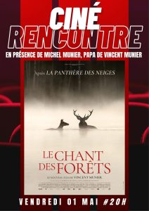Vendredi 1er mai 20h00 , au Cinéma Grand Ecran de La Bresse, projection du dernier film de Vincent Munier , « Le chant des forêts ».