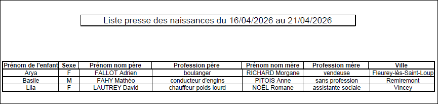 Les naissances de la semaine |