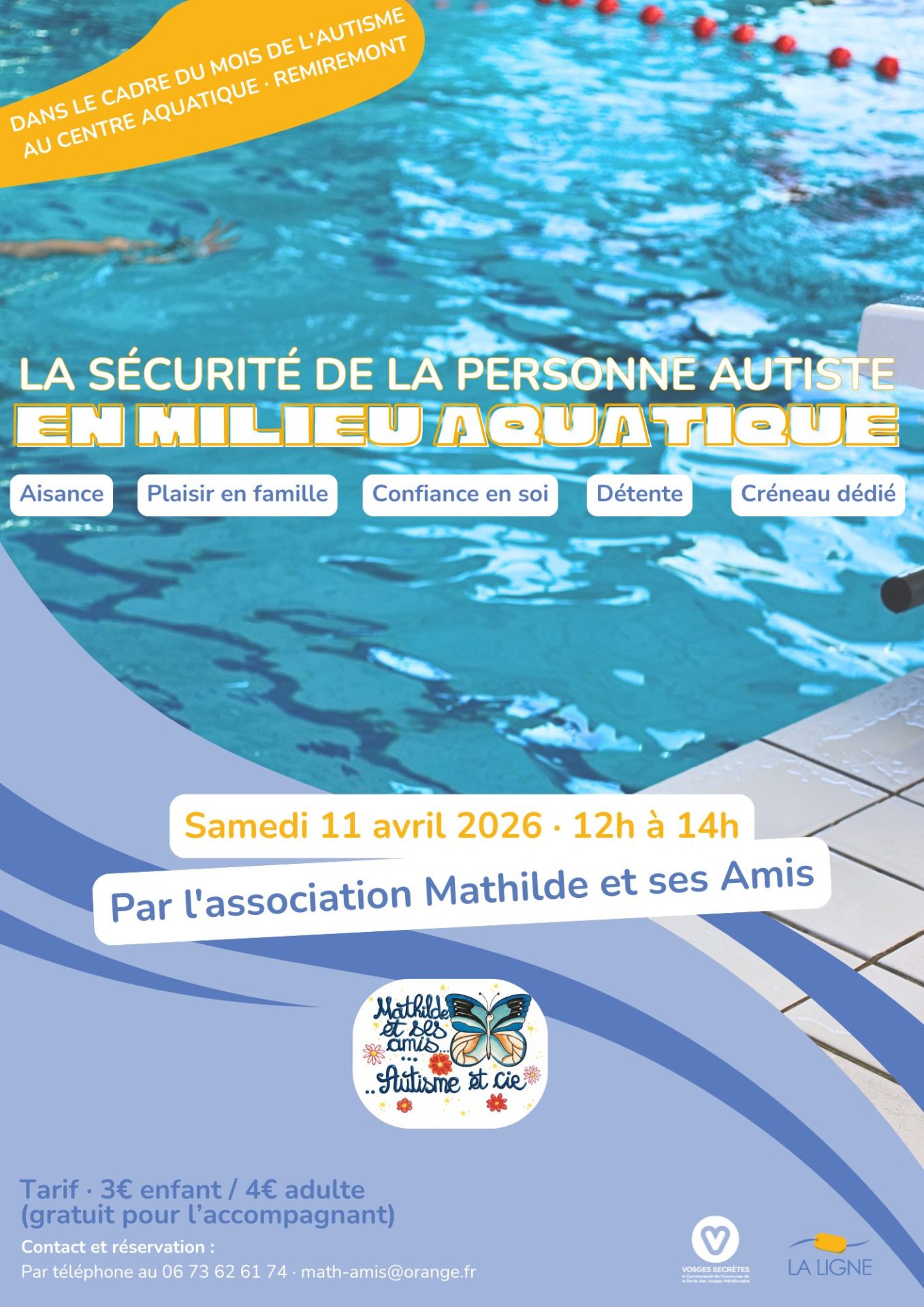 organisé par l’association Mathilde et ses amis dans le cadre du Mois de l’Autisme, afin de sensibiliser à l’autisme et offrir aux familles concernées une séance dédiée au Centre Aquatique La Ligne à Remiremont.