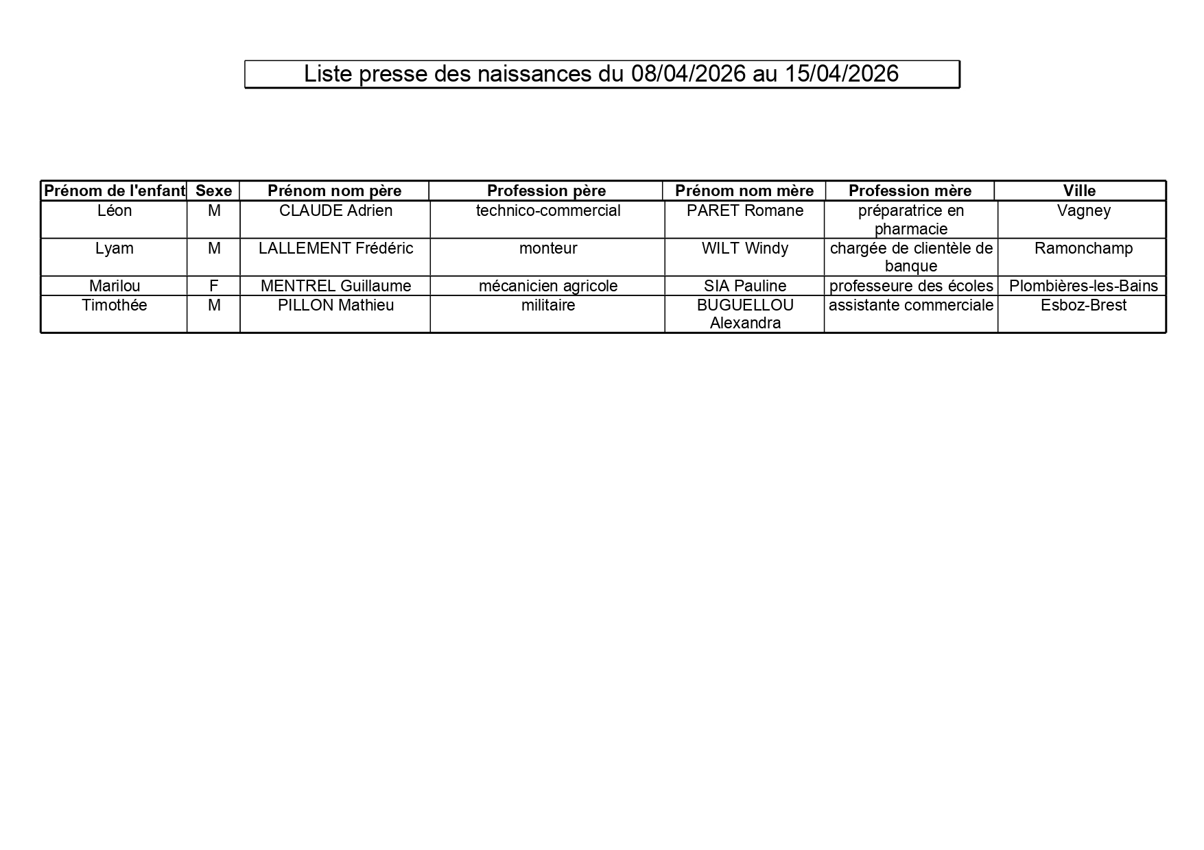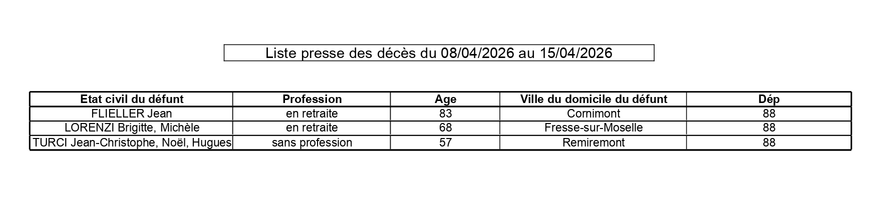 19 avril 2026 | A la Une | Etat civil | Remiremont La redaction