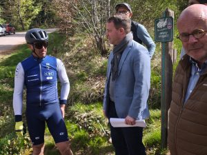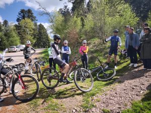 Le stade VTT des Vosges Secrètes accueille actuellement l’équipe de France Pôle Espoir de VTT XCO, ravie de pouvoir s’entraîner sur cet équipement unique dans le Grand Est, ouvert aux athlètes de haut niveau comme aux compétiteurs amateurs ou aux simples amateurs. Ce mardi, le président de la communauté de communes Jean-Benoît Tisserand avait le plaisir de rendre visite aux jeunes vététistes et à leur staff, le tout en compagnie de figures emblématiques du VTT : Eric Jacoté, initiateur du projet de stade sur le territoire et ancien vice-président de la FFC, ou encore Guy Planet, l’ancien président du club de VTT romarimontain.