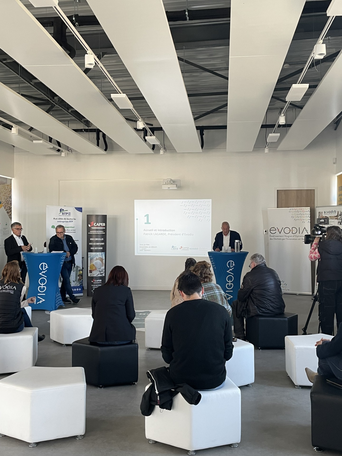 À la Maison de l’Économie Circulaire, EVODIA, SOVODEB, la Fédération du BTP Vosges et la CAPEB ont affiché un front uni. Leur objectif : alerter sur la crise que traverse la filière PMCB (Produits et Matériaux de Construction du Bâtiment), deux ans seulement après son déploiement national.