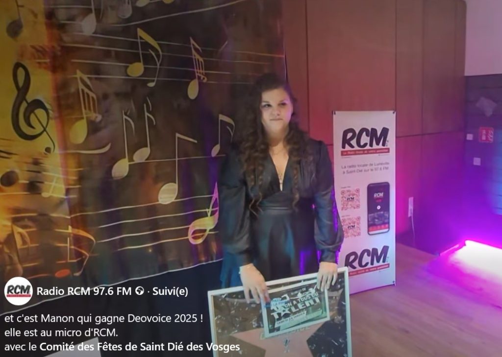 En fin de soirée, le choix du jury s’est porté sur Manon Susa, de Neufmaisons en Meurthe-et-Moselle, qui remporte ce troisième épisode de Déo’Voice. Et par la même occasion un trophée et un chèque de 500 € offerts par RCM, un passage sur les ondes de la radio associative locale (97,6 FM). La jeune femme aura également l’opportunité de se produire lors de la première partie de l’un des concerts produits par Nemrod Productions, en mars 2026 au Casino de Gérardmer.