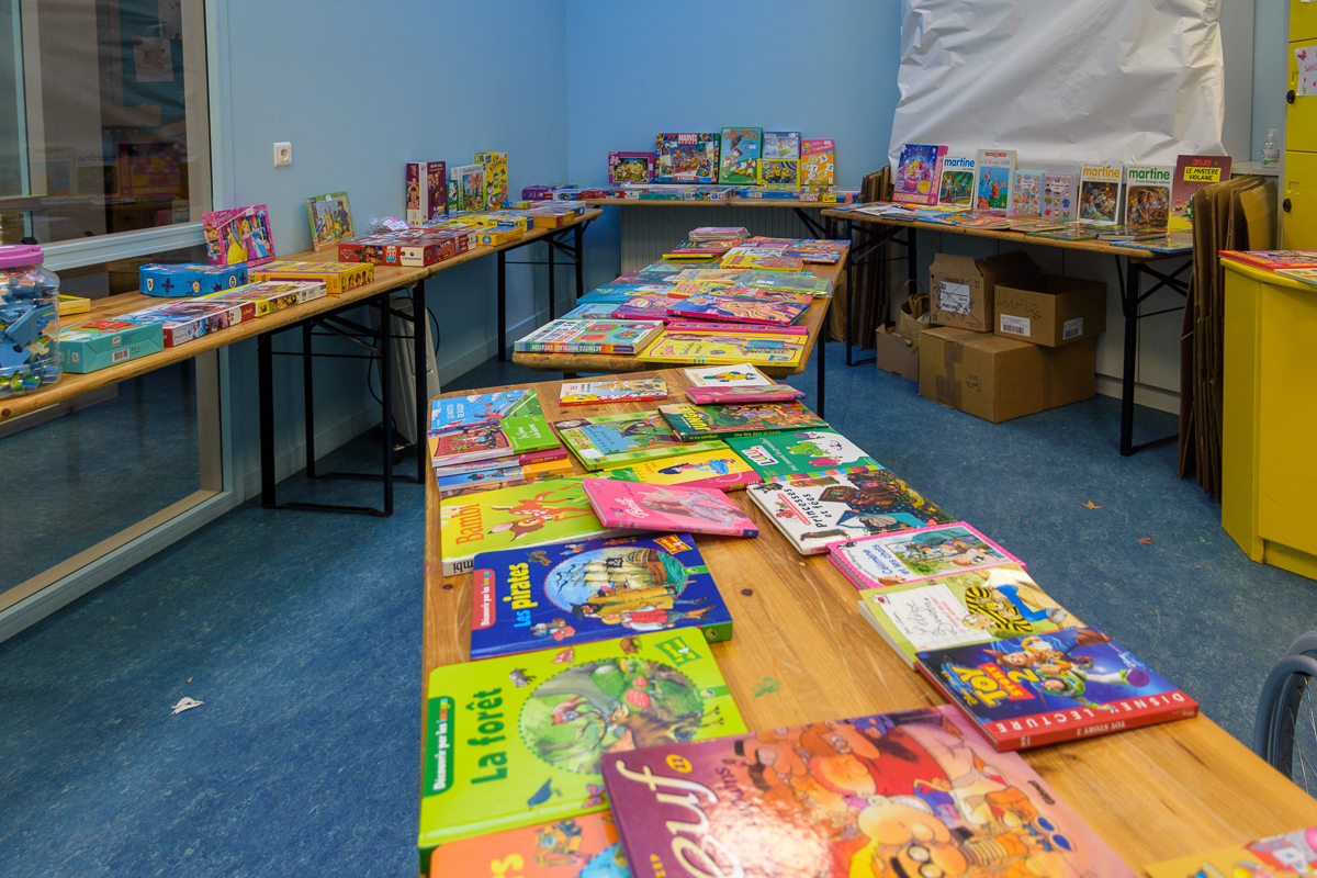 De nombreux jouets et jeux, parmi lesquels des voitures miniatures, jeux de société, poupées et autres livres, avaient été déposés pour cette édition 2025, qui conservait une formule inchangée par rapport aux précédentes.