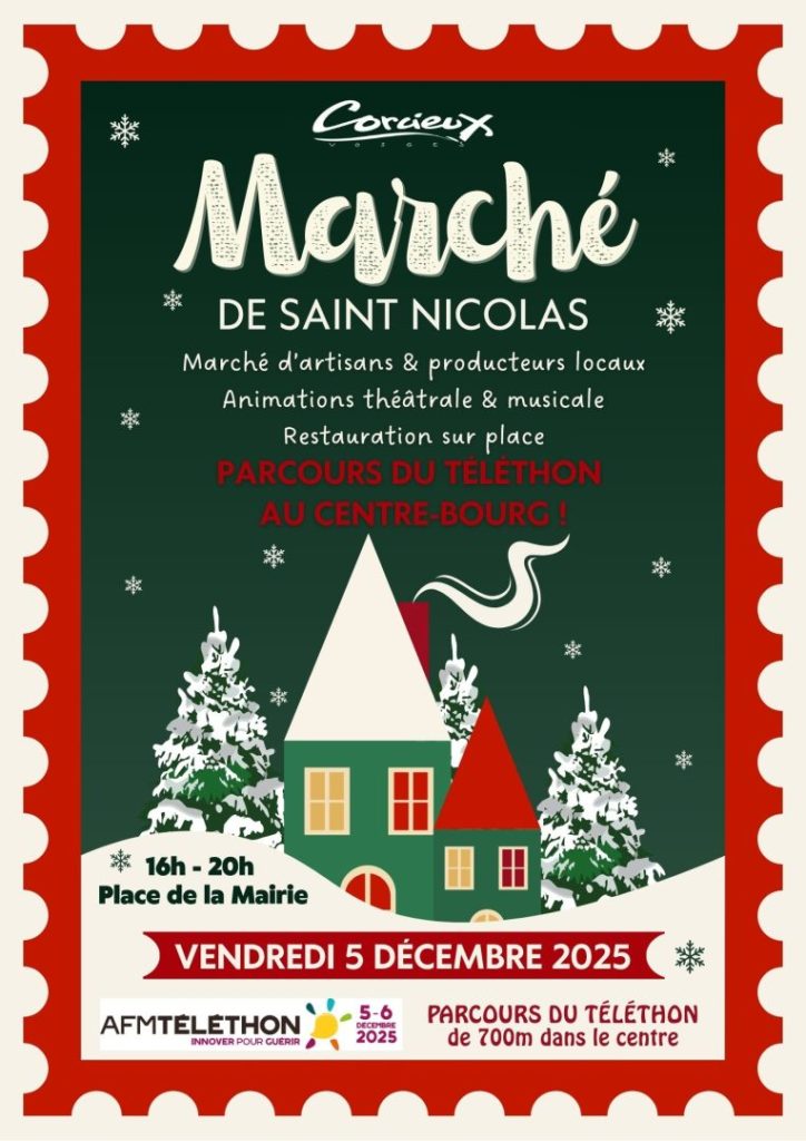 À Corcieux, plusieurs rendez-vous rythmeront le mois de décembre, entre traditions de la Saint-Nicolas, solidarité autour du Téléthon et animations festives de fin d’année.