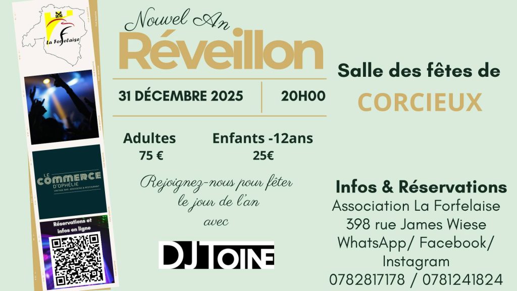 Le 6 décembre, un après-midi jeux de cartes au profit du Téléthon sera organisé à la salle Multiactivités dès 14 h, avec une urne disponible pour les dons. En fin de mois, le repas du Réveillon de la Saint-Sylvestre se tiendra le 31 décembre à 19 h à la salle des Fêtes, avec une soirée mêlant repas et animation musicale assurée par La Forfelaise.