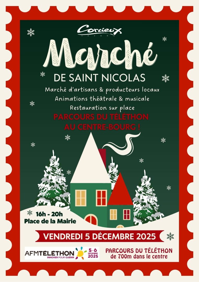 À Corcieux, plusieurs rendez-vous rythmeront le mois de décembre, entre traditions de la Saint-Nicolas, solidarité autour du Téléthon et animations festives de fin d’année.