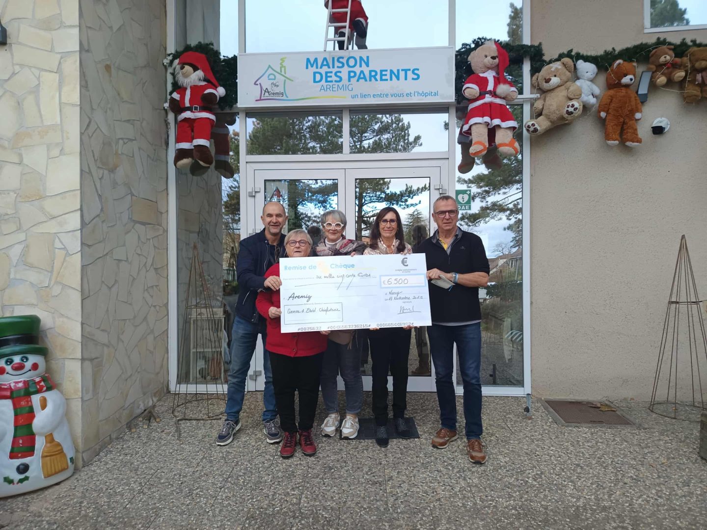 Ce lundi 17 novembre, un chèque de 6 500 € a été remis au président de l’AREMIG et à la directrice de la Maison des Parents, témoignant de la solidarité locale autour de cette initiative.
