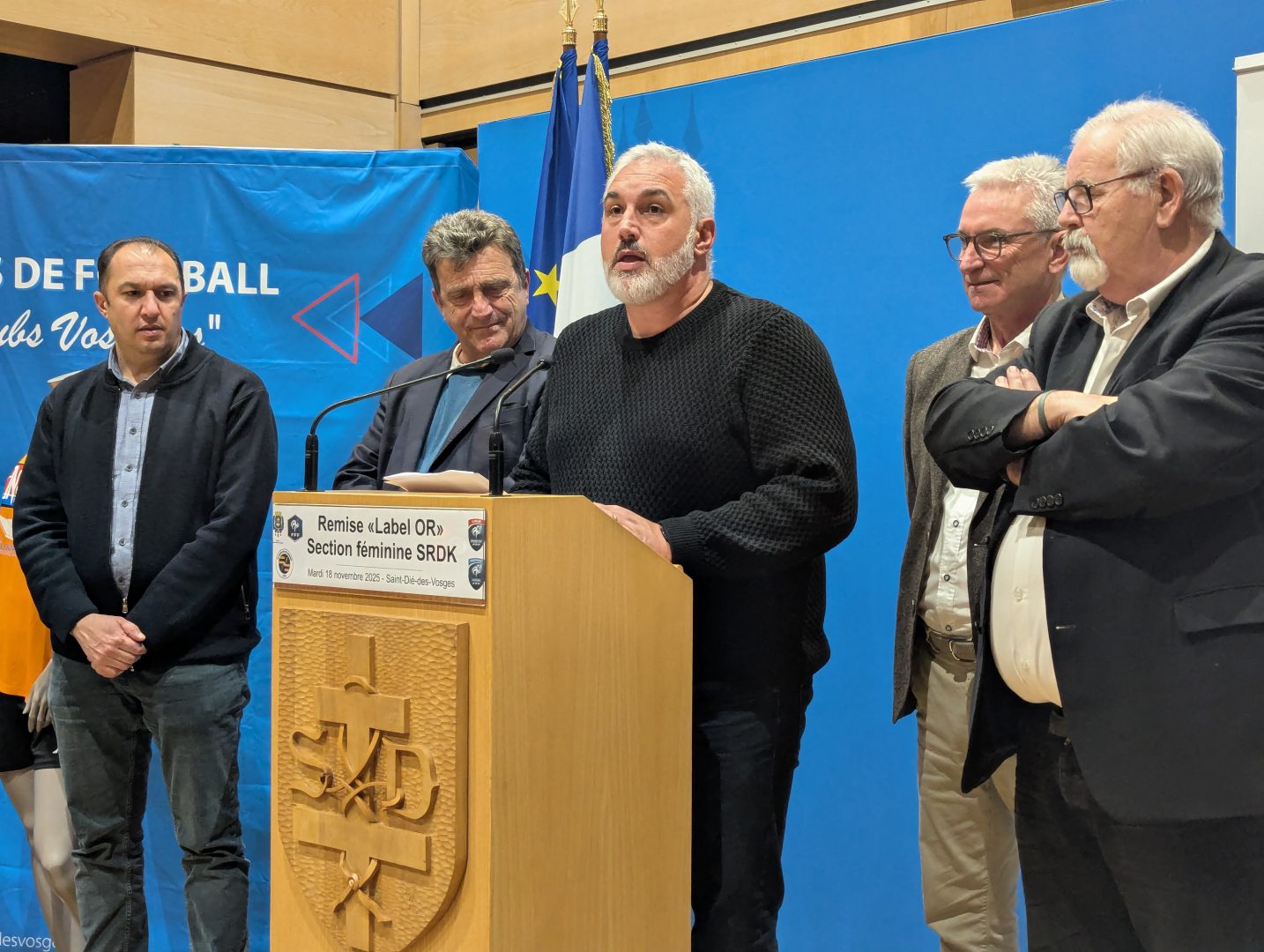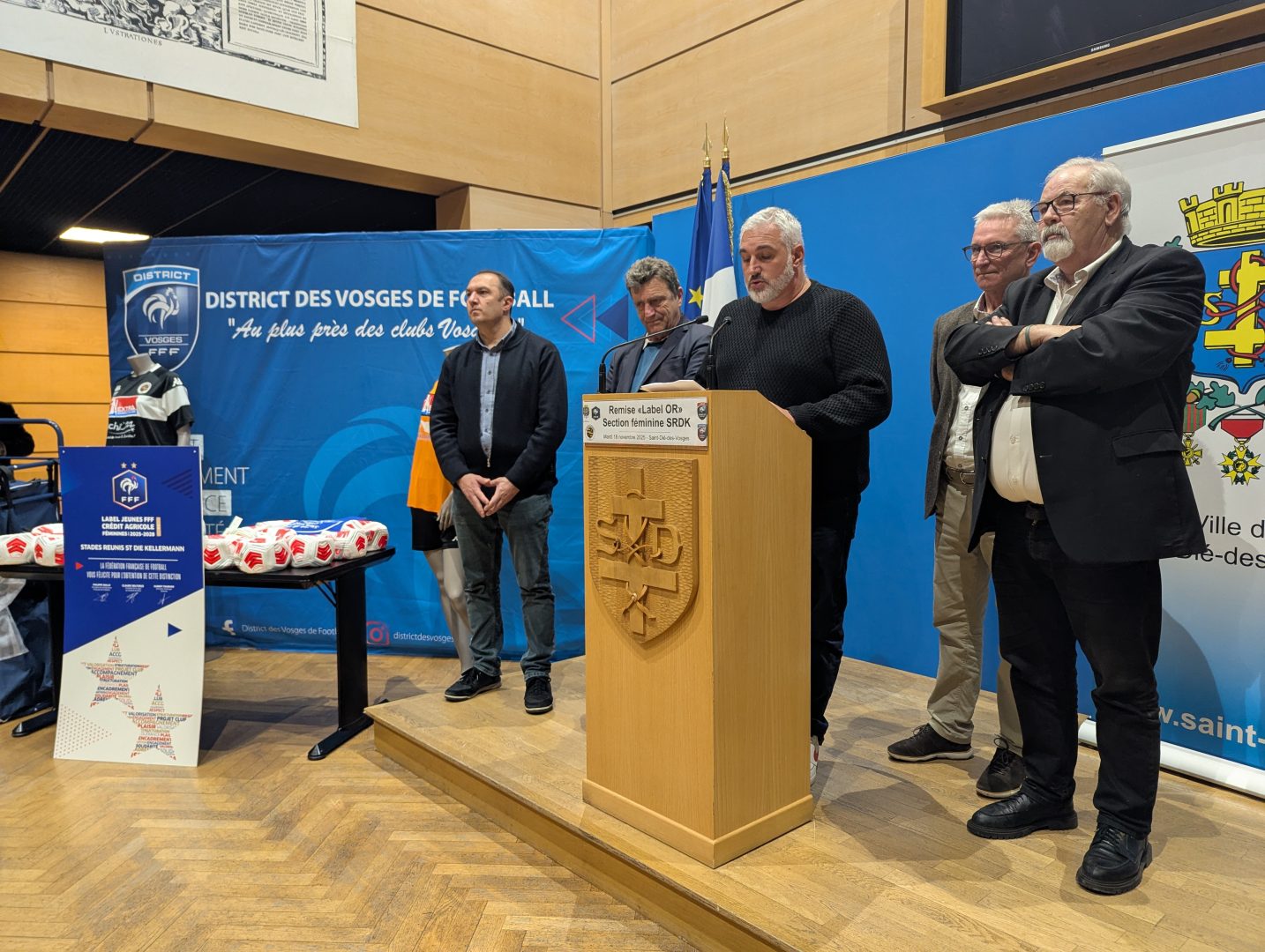 Ce mardi en fin de journée, le responsable de la section féminine des SRDK, Cédric Christophe, a été mis à l’honneur avec l’équipe d’encadrement et les jeunes joueuses au Grand Salon de l’Hôtel de Ville par le maire Bruno Toussaint, l’adjoint aux Sports Mustafa Guglu, le président du District des Vosges de football Bruno Herbst et Patrice Greth, directeur technique régional à la Ligue Grand Est de Football.