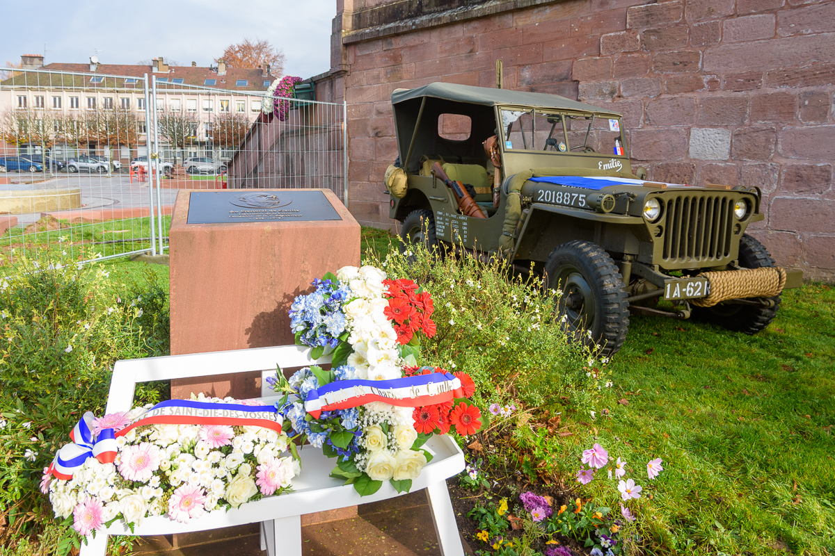 55 ans après sa disparition, Saint-Dié-des-Vosges a rendu un nouvel hommage à Général de Gaulle, hier dimanche 9 novembre, lors d’une cérémonie qui s’est tenue en fin de matinée devant la stèle de la place déodatienne portant son nom. Organisée par le Club Charles de Gaulle 88, cette cérémonie commémorative annuelle était ponctuée de dépôts de gerbes de fleurs, avec la présence cette année de deux véhicules militaires d’époque.